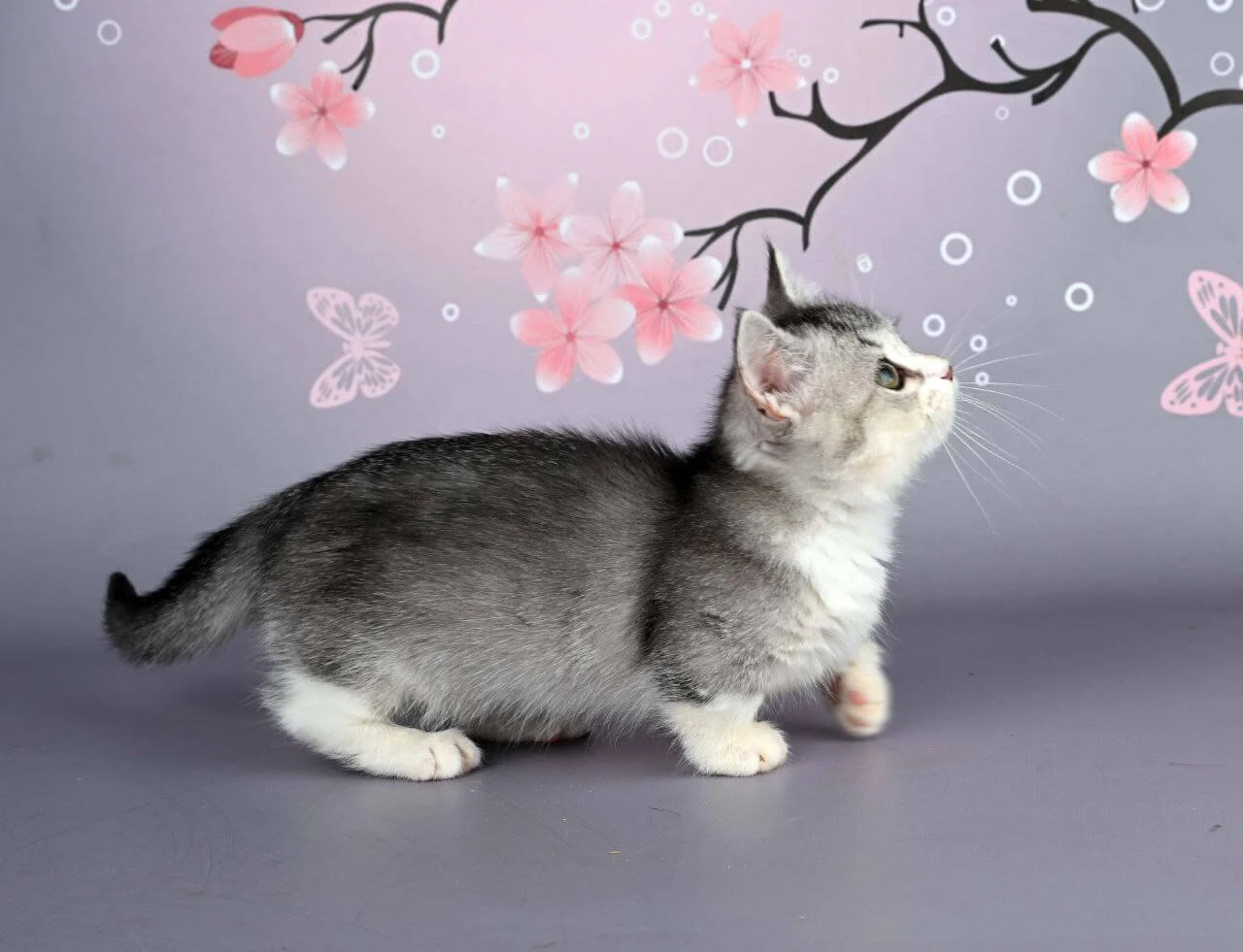 Let your heart melt with Yesenia, a captivating Black Tabby Ticked With White Munchkin cats for sale UK whose golden yellow eyes promise endless warmth and wonder. Yesenia is the embodiment of kitten charm curious, social, and already sharing gentle purrs that fill a room with comfort. Her silky fur and peek a boo white accents make every cuddle extra special, and her show quality lineage shines in every playful step.